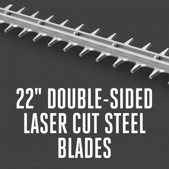- 22″ Double-sided, laser cut steel blades with 1″ cut capacity.