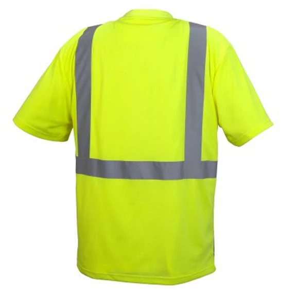 - Hi-Vis lightweight polyester moisture wicking t-shirt with black bottom.